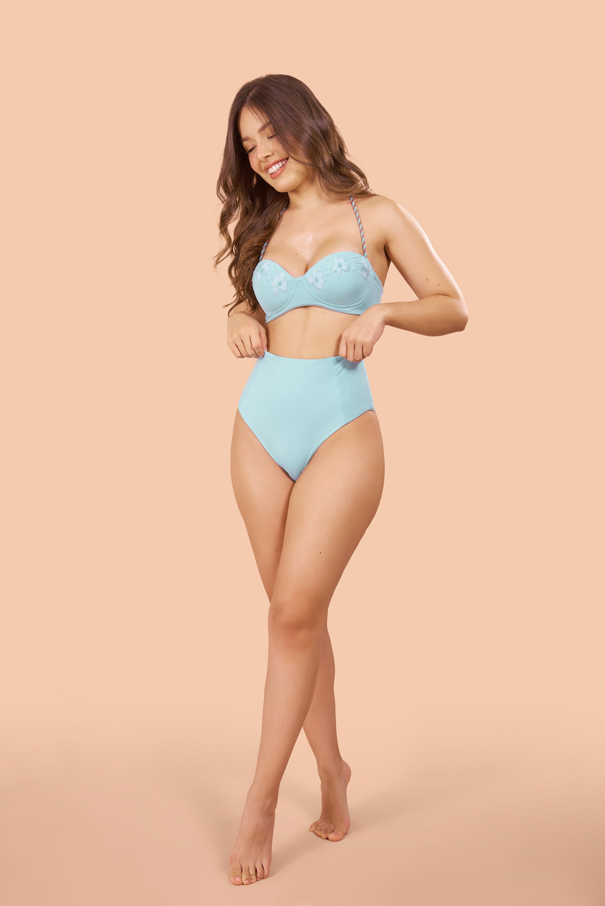 Top Briana tiene una estructura en copas prehormadas en espuma suave sin relleno, cargaderas ajustables y de anudar en la espalda tipo pañoleta. Está terminado con detalles hechos a mano en copas y tiras para un toque más elegante.